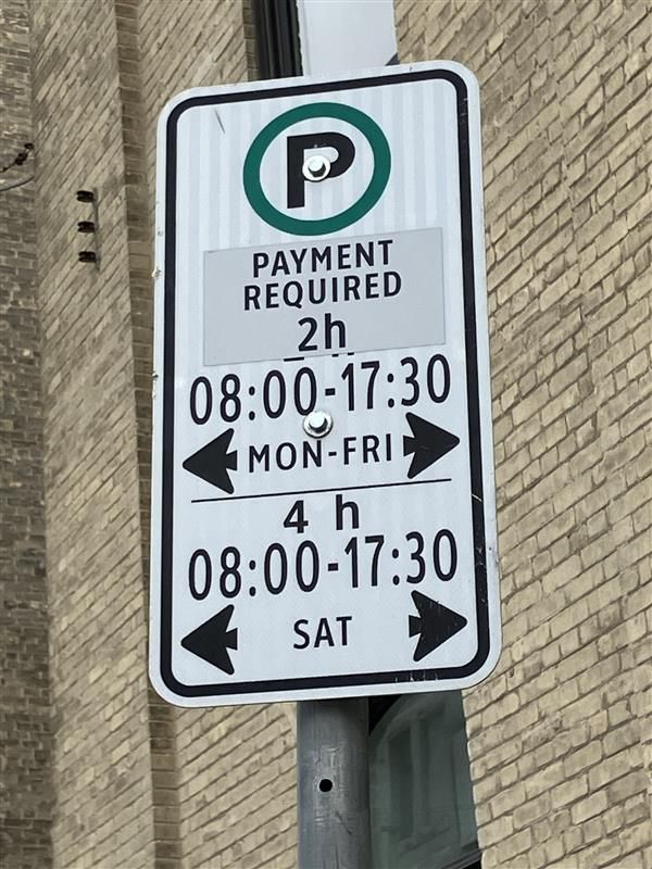 Payment is required for on-street parking during designated hours in the Downtown, Exchange District, West End, and in some areas surrounding hospitals. Paid parking is generally in effect from Monday to Friday, between 8 a.m. and 5:30 p.m. However, these hours may vary so pay close attention to signage. For example, street signage may indicate you can only park from 9 a.m. to 3:30 p.m. in areas where there is no parking allowed during rush hour times.